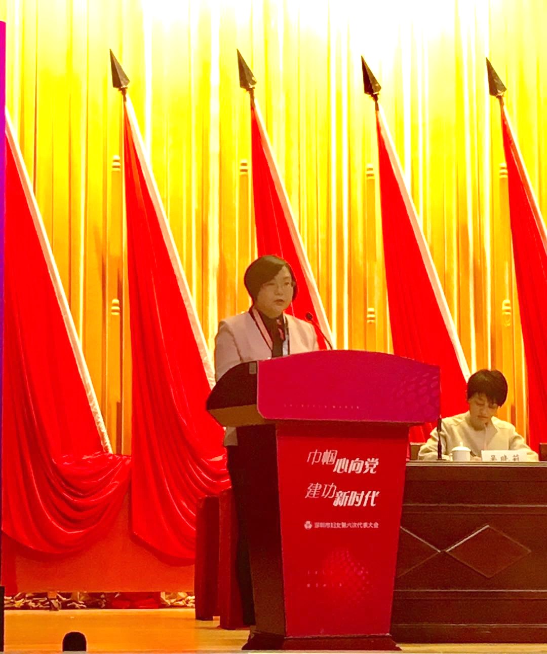 巾帼心向党,建功新时代,2018年12月17日,深圳市第六届妇女代表大会在市委党校大礼堂隆重召开了,412名各族各界妇女代表肩负着全市妇女的信任与重托齐聚一堂,共商深圳妇女事业发展大计。我院口腔科医生曾小芳作为妇女代表参加此次盛会。