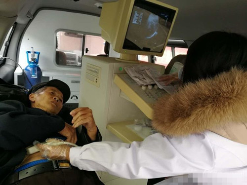 一位受膝关节炎困扰多年的老人针灸后疼痛得到缓解,临走时握着医生的手久久不愿松开。