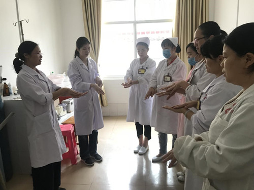 培训医护士人员七步洗手法,讲述洗手的指征,具体动作及要领,大家都学得很认真。