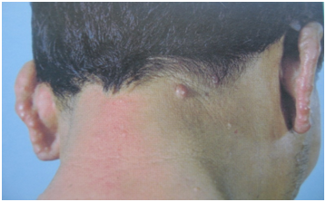 ③面部或耳垂出现肿胀或结节肿块。