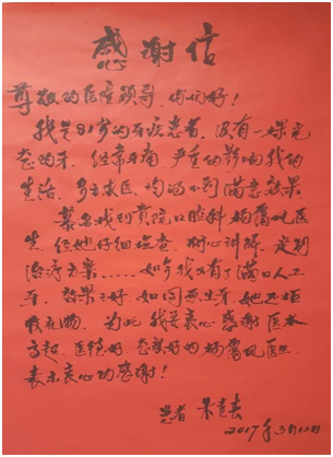 近日,一位81岁的老先生给福田区慢病院送来一封热情洋溢的感谢信。
