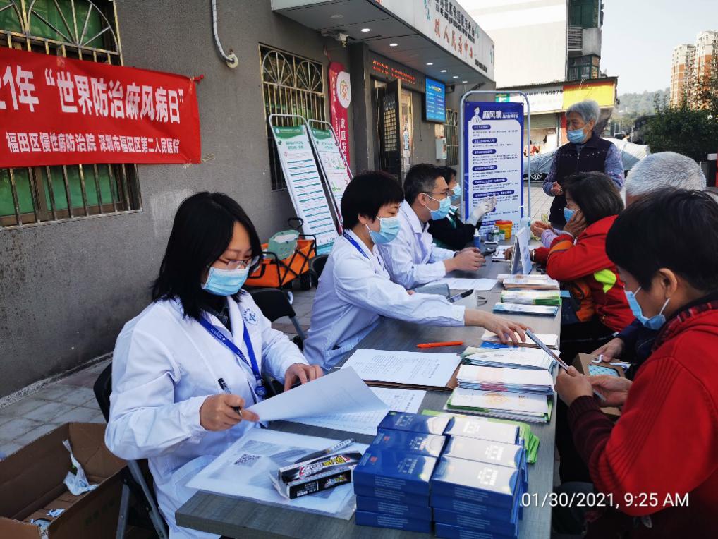 在第68届"世界防治麻风病日"暨第34届"中国麻风节"即将到来之际,福田区开展系列主题活动。1月27日,福田区慢病院代表区卫健局、民政局及残联,到惠州白露医院慰问福田区的麻风病休养病人,为住院患者送去慰问金及慰问品,改善患者生活。1月30日,区慢病院联合区二院、龙尾社康中心,组织专家在梅河社区党群服务中心举办了“世界防治麻风病日”主题宣传及皮肤病义诊咨询活动,向公众普及“麻风病可防、可治、不可怕”的防治知识。