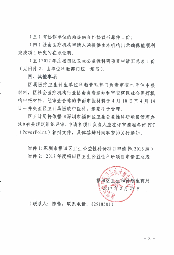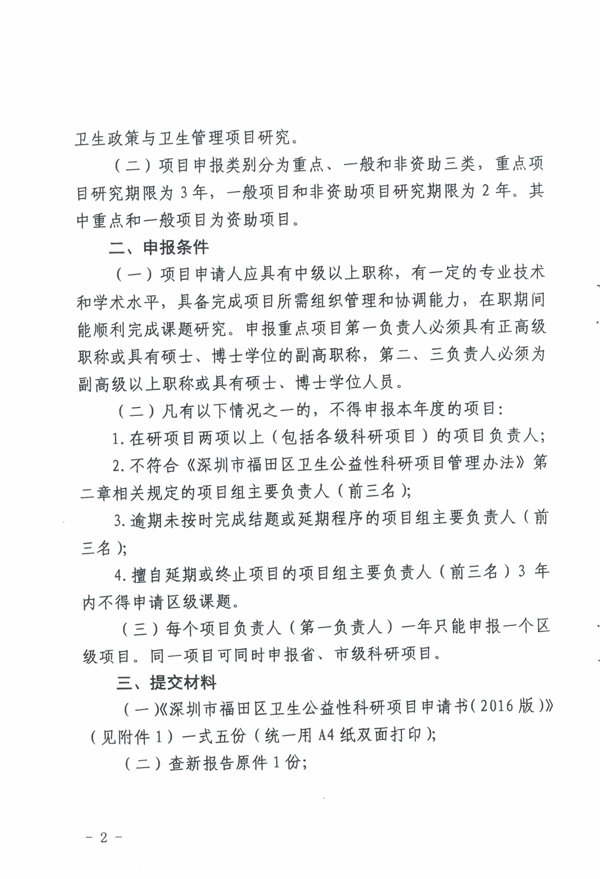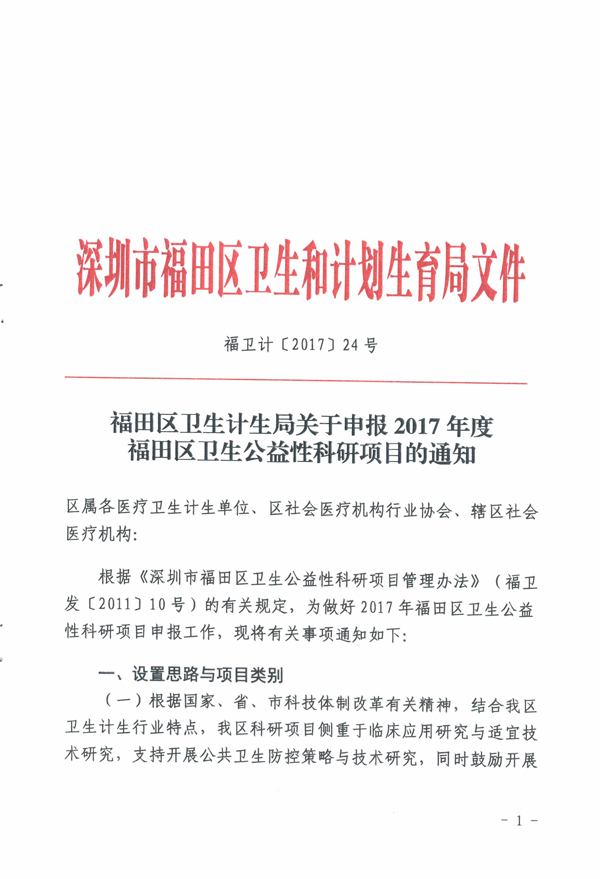 关于申报2017年度福田区卫生公益性科研项目的通知