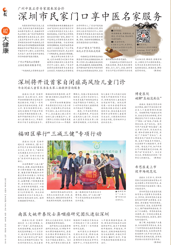 为了在市民中宣传和倡导健康生活方式,3月31日上午,“福田区全民健康生活方式行动——‘三减三健’专项行动启动会”在深圳市东海文化广场举行。