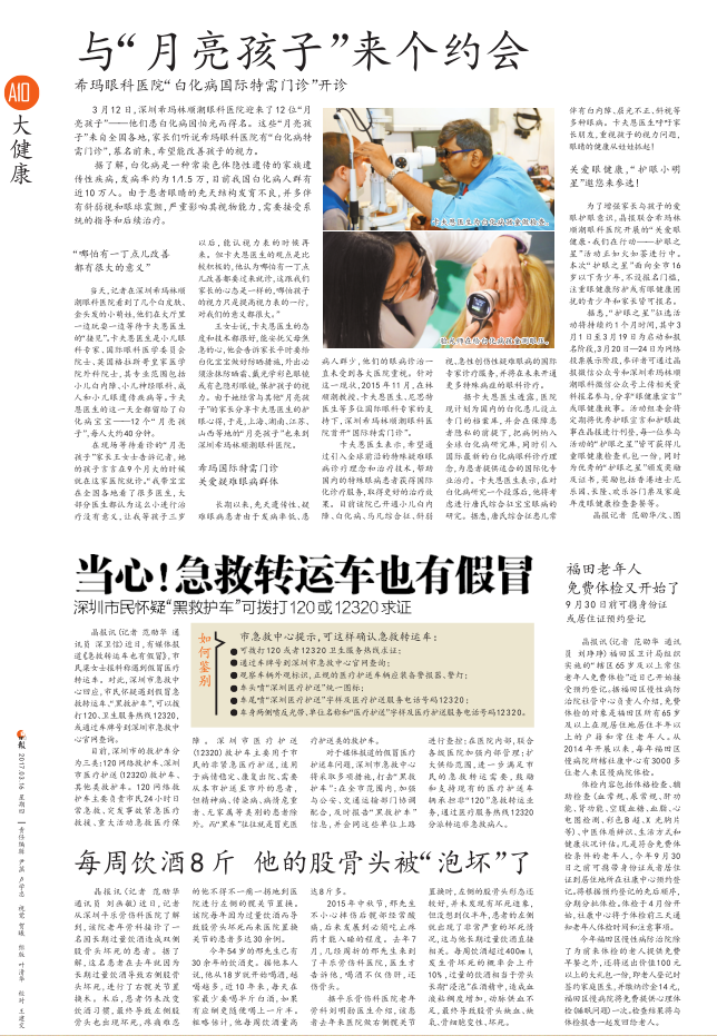 今年福田区慢性病防治院除了为前来体检的老人提供免费早餐之外,还将送出价值100元以上的大礼包一份,即老人登记时签约家庭医生,并缴纳诊金14元,福田区慢病院将免费提供心理体检(睡眠问题)一次。检查结果将与体检报告一起发回给老人。