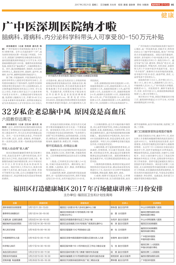 据张雪姣医生介绍,截至今年1月,福田区纳入专业慢性病健康管理的高血压患者已达到40012人。