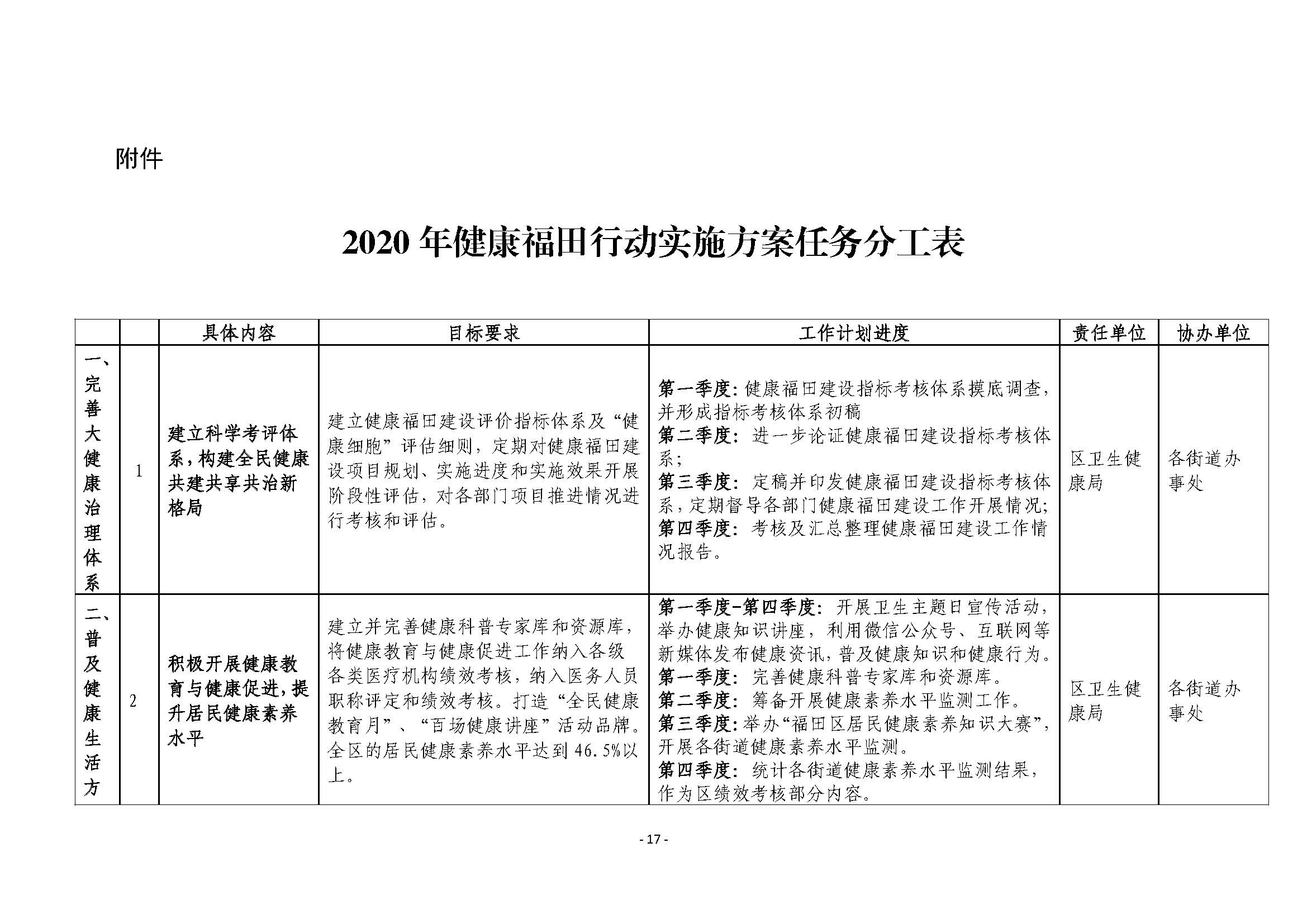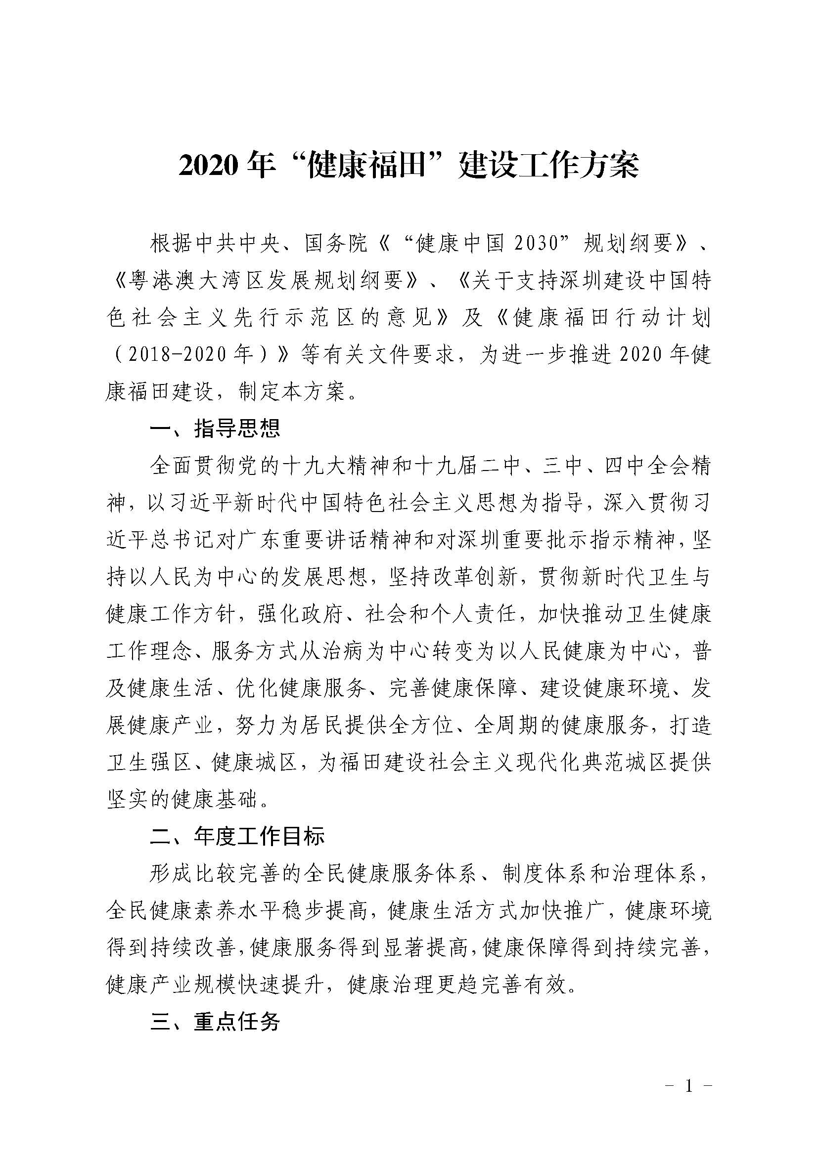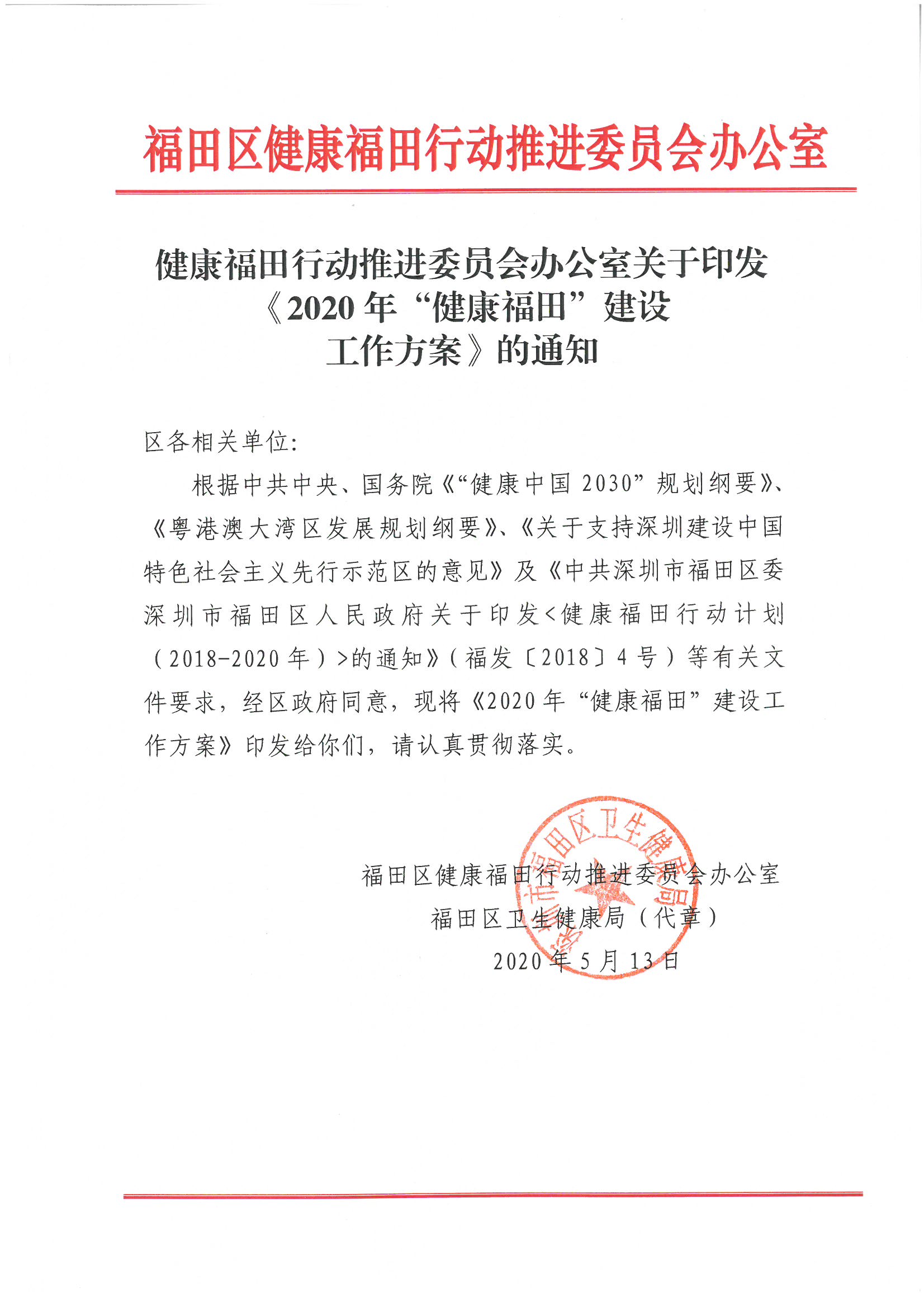 健康福田行动推进委员会办公室关于印发《2020年“健康福田”建设工作方案》的通知