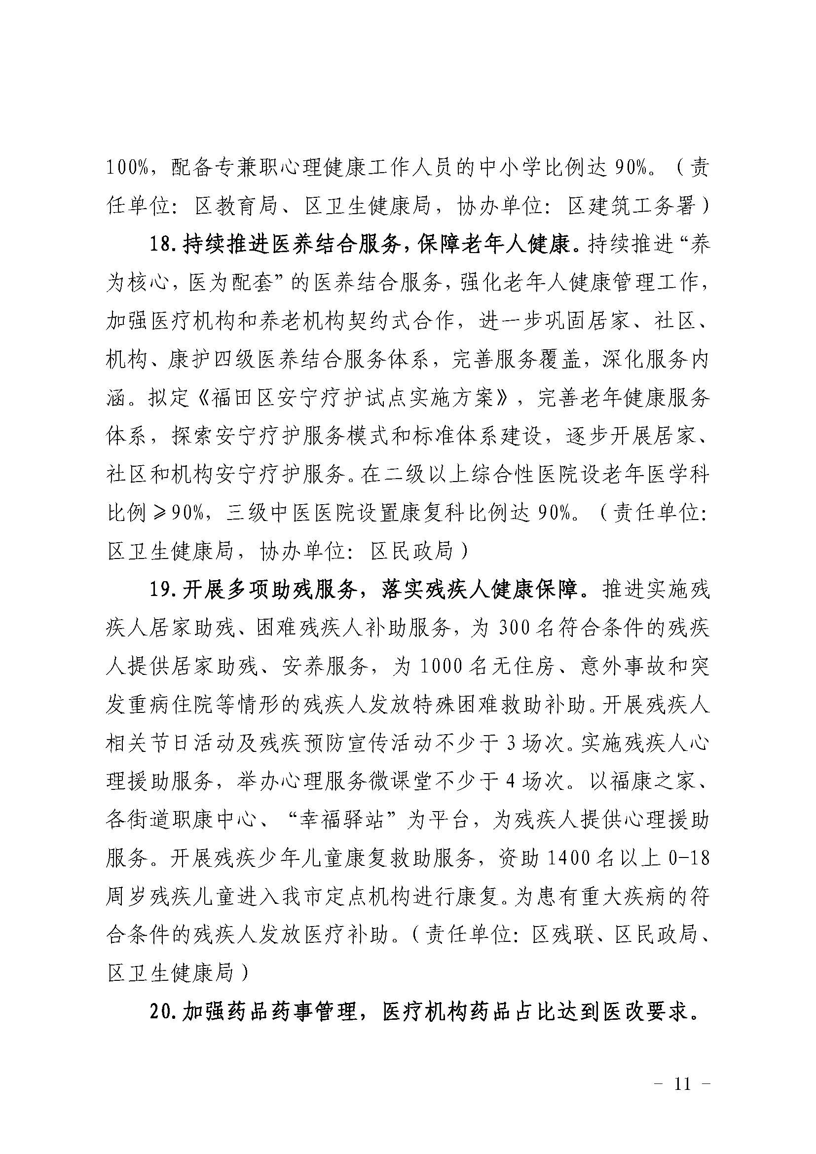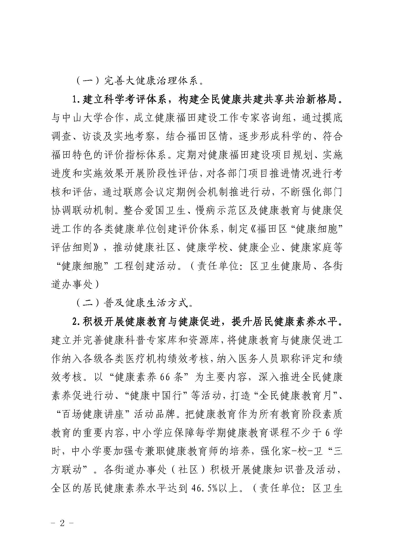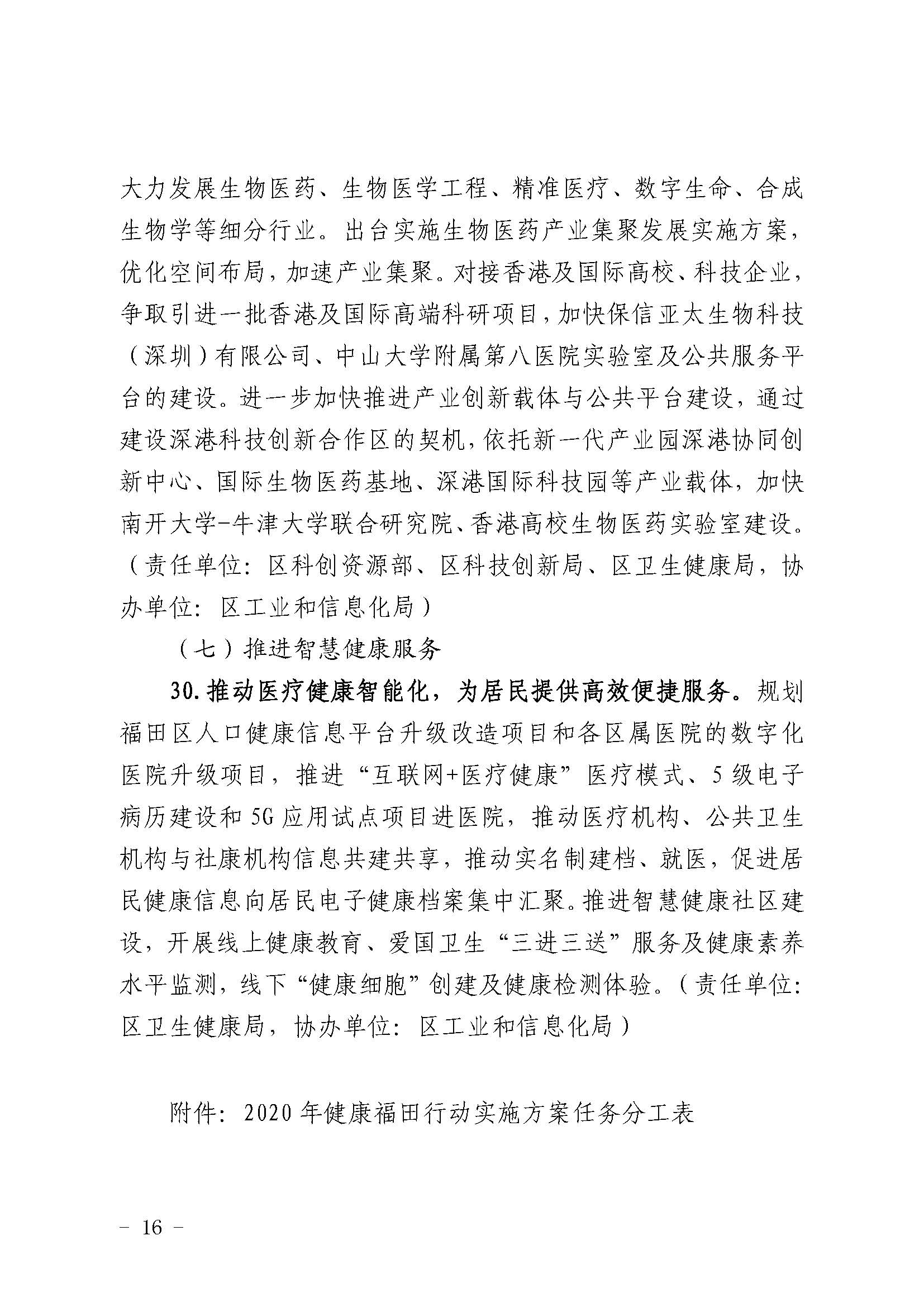 健康福田行动推进委员会办公室关于印发《2020年“健康福田”建设工作方案》的通知