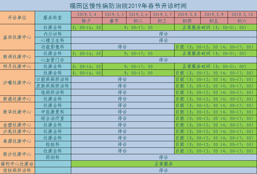 2019年春节期间开诊安排如下,祝广大市民朋友节日快乐,阖家幸福。