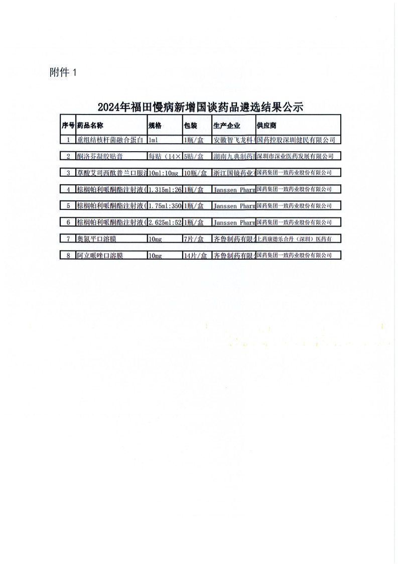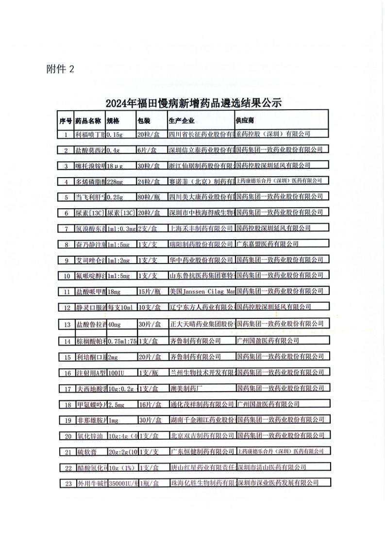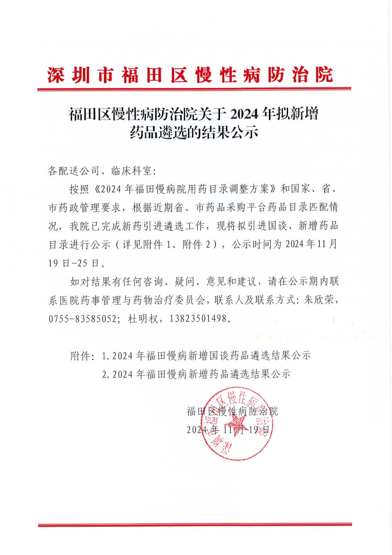 福田区慢性病防治院关于2024年拟新增药品遴选的结果公示