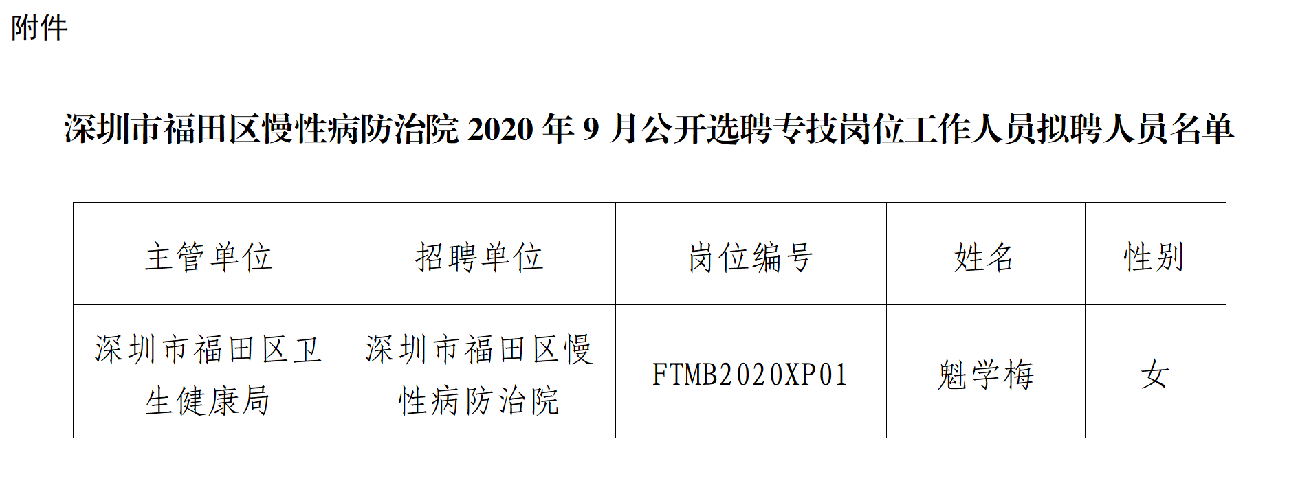 附件:深圳市福田区慢性病防治院2020年9月公开选聘专技岗位工作人员拟聘人员名单