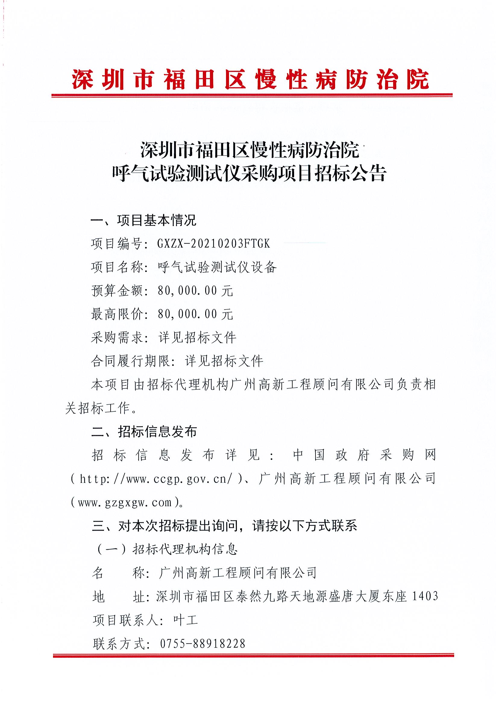 深圳市福田区慢性病防治院呼气试验测试仪采购项目招标公告