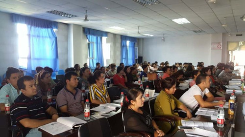理论课上,大家都很认真地听课。大家都工作很忙,业务,扶贫、维稳……"白+黑"、"5+2"的工作模式下,来一趟听课不容易。所以我们需要百分百的努力,使大家觉得没有白来,有获得感。从课件到幻灯片都精心安排。普通话需要讲得很慢、发音需要很准,这样才有利于民族同志听懂学会。