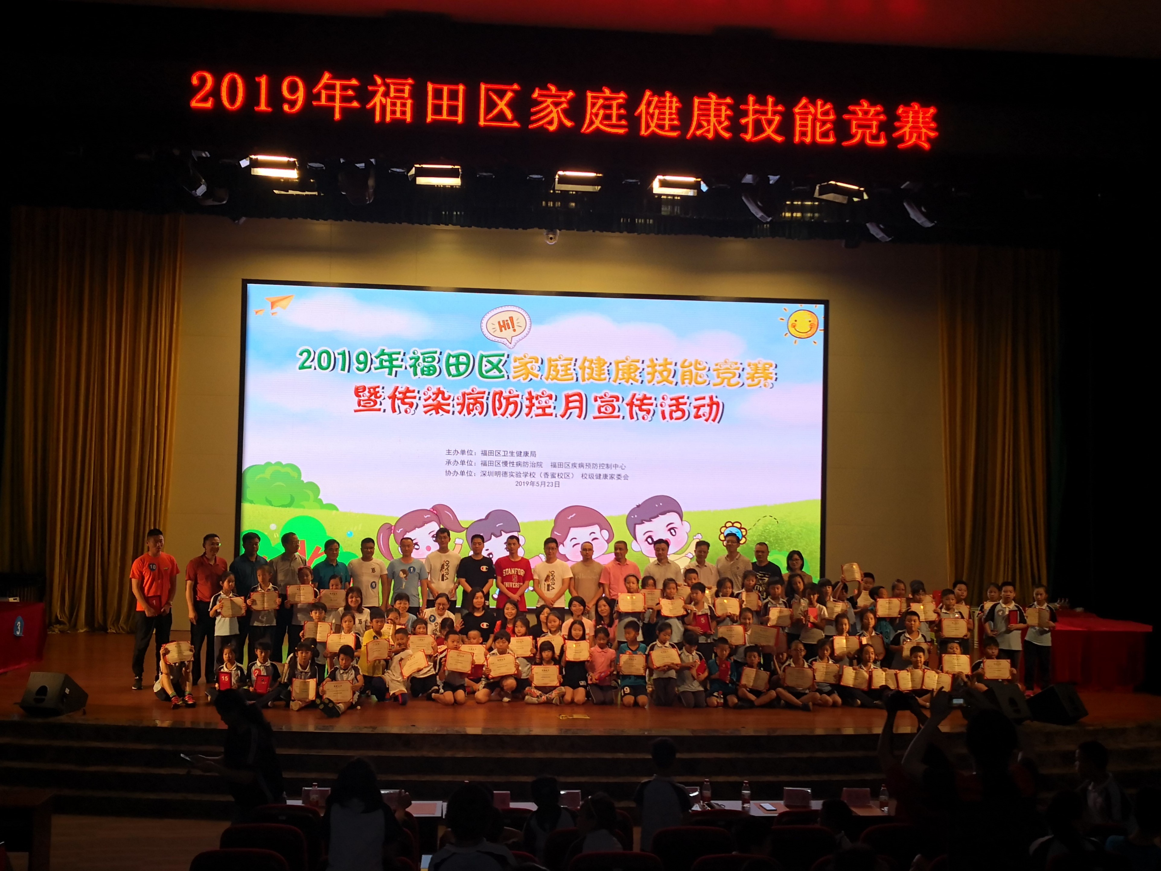 由福田区慢病院、福田区疾控中心主办,深圳明德实验学校(香蜜校区)健康家委会协办的2019年福田区家庭健康技能竞赛暨传染病防控月、“5.20”中国学生营养日宣传活动5月23日在明德实验学校举办。