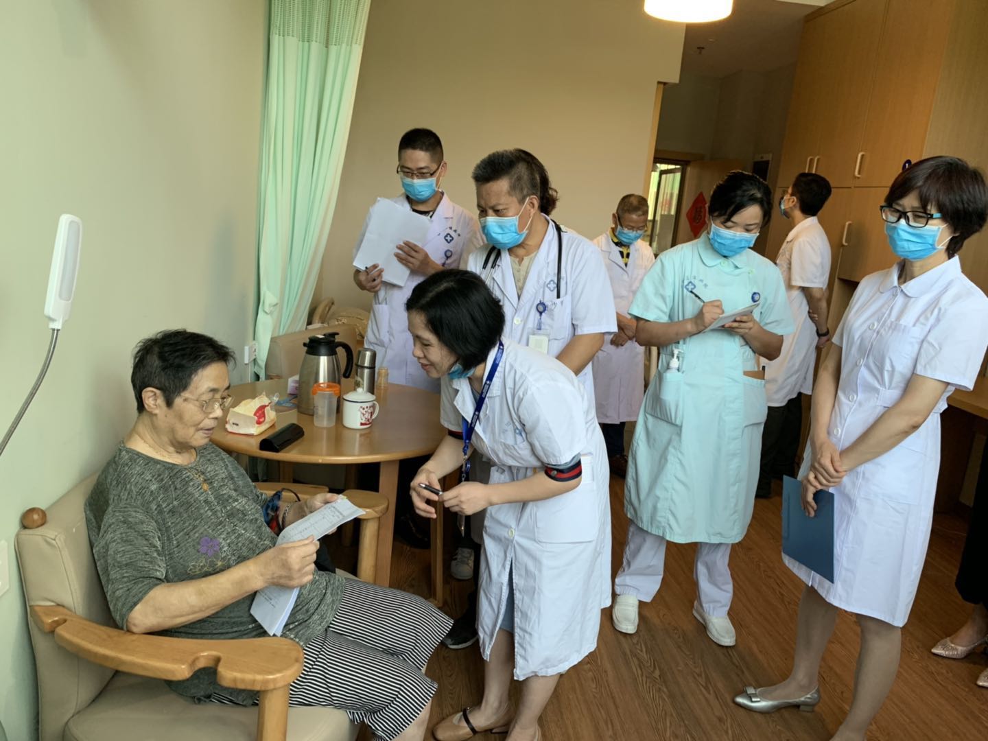 近日区慢病院组织全院专家在福田区福利中心开展业务联合大查房,针对老人们的健康需求,结合机构特色,组建了包括高血压、糖尿病、皮肤病、精神心理、神经内科、老年病护理、临床药学等业务的专家队伍开展每周一次的综合查房。专家们进行了周到的问诊、体格检查,并采取多学科病例讨论、制定和调整治疗方案、指导用药、健康教育、家属护工培训及健康教育等方式的医疗服务,获得了老人的高度评价。老人一般患有一种以上疾病,专家通过会诊,提出针对性健康指导。一位80岁的文姓老人表示,上周二区慢病院医生查房时对自己的慢性湿疹进行了治疗,这周复查又叮嘱了用药和沐浴的注意事项,非常细心周到,她对这样的服务期盼已久,真是足不出户,就能实现 “老有所养,病有所医”。查房结束后,专家们从三级医师配合、病情诊断、合理用药、院内感染防控等方面进行了讨论,为进一步提高社康站的临床诊治水平,提高和改进医疗质量提供有力支撑。(刘琤琤 陈菊莲/文 郑成林/图)