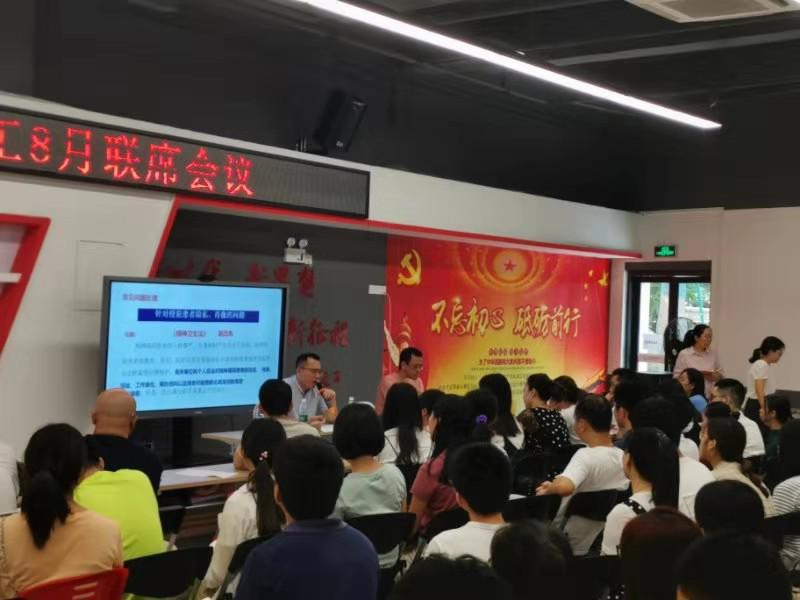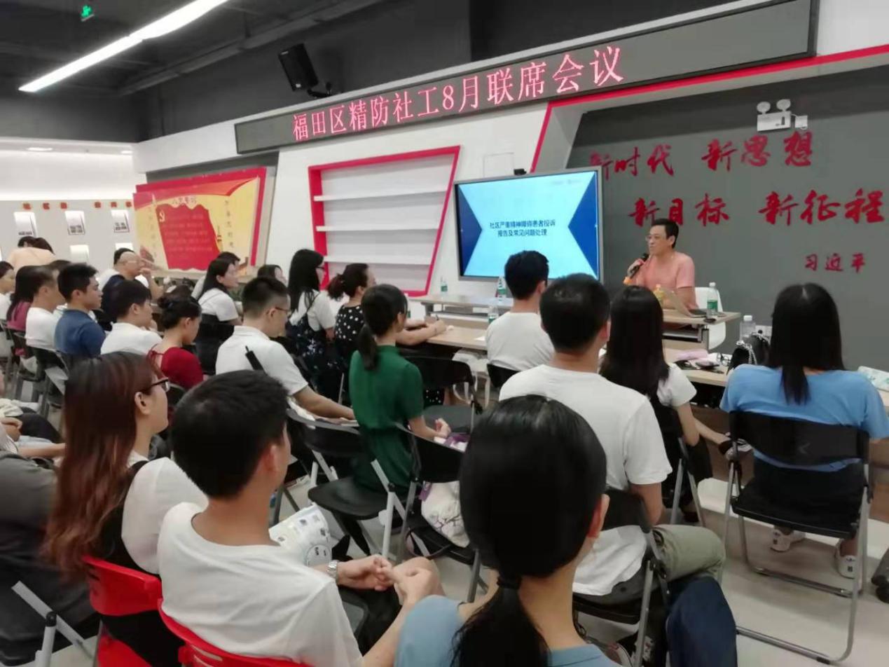 为了更好推进福田区精神卫生工作的开展,加强精神障碍患者的有效管理,2019年8月12日下午,福田区精防社工8月联席会议在区慢病院召开,100多名社工参加了本次会议。区慢病院精防科负责人在会上总结了8月工作情况,讲解了有效介入精神障碍患者康复服务的方法,并对社工进行了现场指导。随后,社工机构讲师针对《市精神卫生中心关于印发深圳市严重精神障碍患者社区服务诉求受理和处理工作指引》,详细讲解了如何规范流程,正确进行投诉纠纷等相关问题的处理和应对,资深精防社工作了患者访视实战经验的分享。(万荣妍 王好艳/文 温定渊/图)