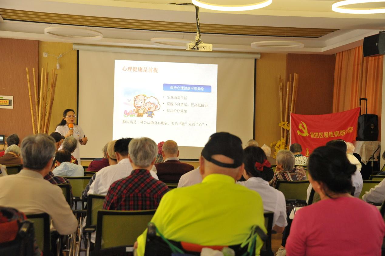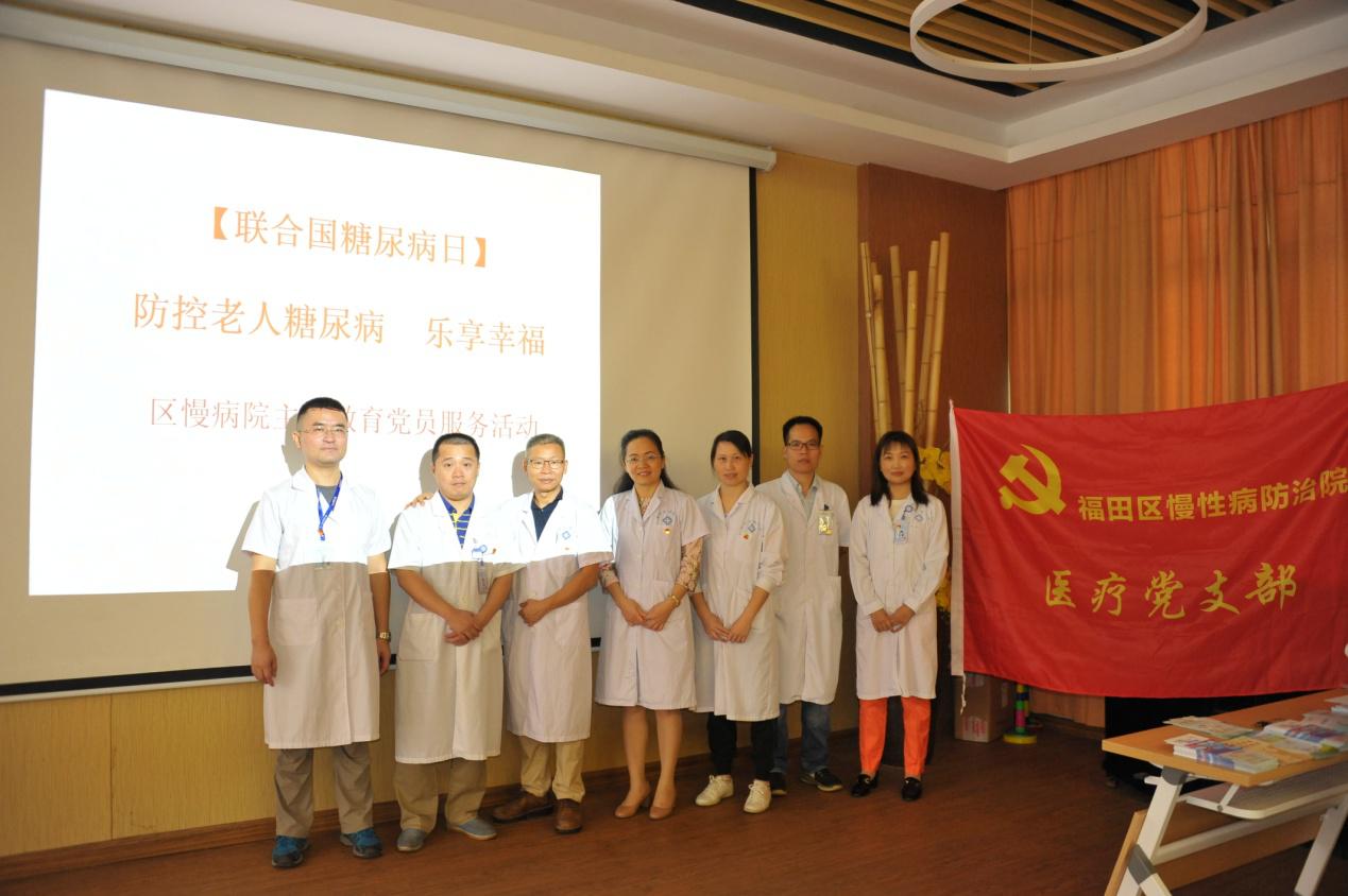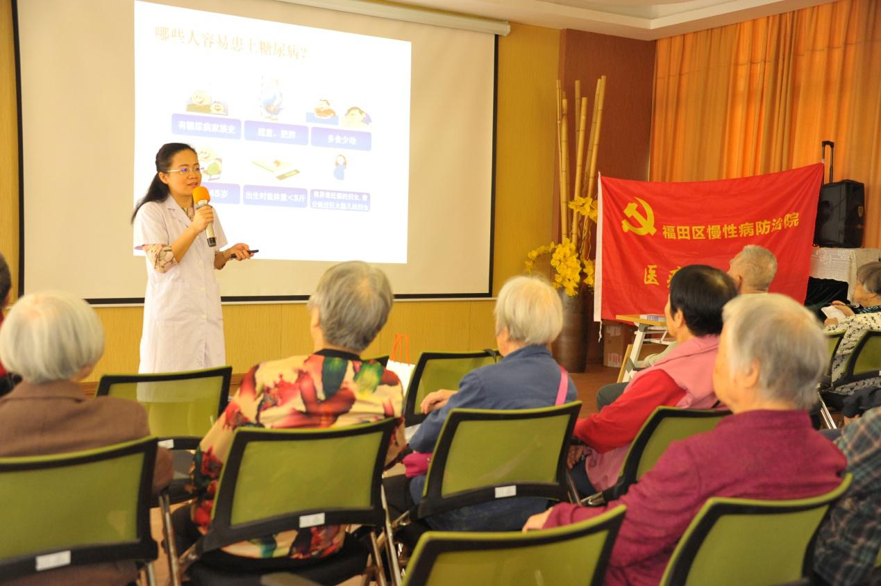 11月12日上午,福田区慢性病防治院医疗党支部、内分泌科和福田区福利中心联合举办了防控老年人糖尿病主题教育党员服务活动。今年联合国糖尿病日主题为“防控糖尿病 保护你的家庭”。区慢性病防治院内分泌科主任、医疗党支部书记赖丽萍向区福利中心老年人宣讲糖尿病防控科学理念,重点讲解了糖尿病综合管理的“五驾马车”: “教育”是核心,“饮食”是基础,“运动”是手段,“药物”是武器,“监测”是保障。“心理健康”是糖尿病治疗的前提,五驾马车是基础,“预防并发症”是终极目标,统称为“健康新7点”。医护人员现场根据老年人运动特点带领听众一起做简单运动,加深他们对糖尿病防治知识的理解和日常运用。通过开展糖尿病主题知识讲座活动,普及糖尿病预防知识,起到早预防、早治疗的作用。现场老年人积极提问、踊跃交流,纷纷表示这样的科普活动生动易学,让他们受益匪浅。(潘爱玲/文 张明影/图)