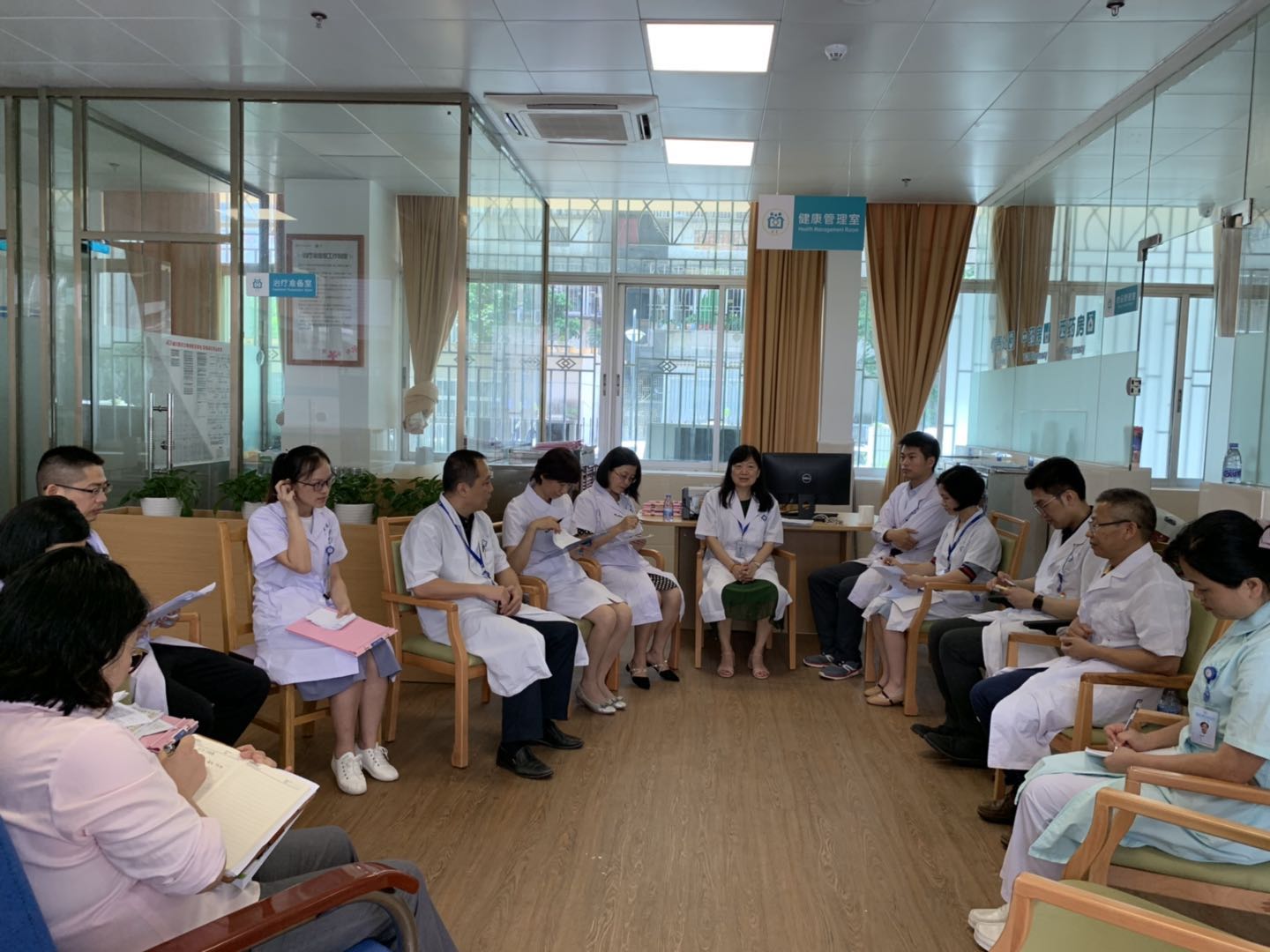 医院主动发挥机构特色,结合老年人的健康需求,组建了包括高血压、糖尿病、皮肤病、精神心理、神经内科、老年病护理、临床药学等专业的专家队伍,每周二开展综合查房。专家们对老人进行周到的问诊、体格检查,随后开展多学科病例讨论、制定和调整治疗方案、指导用药、健康教育、家属护工培训及健康教育,获得了老人和家属的高度评价。老人一般患有一种及以上疾病,专家通过会诊,提出针对性健康指导。为进一步提高社康站的临床诊治水平,改进和提高医疗质量提供有力支撑。