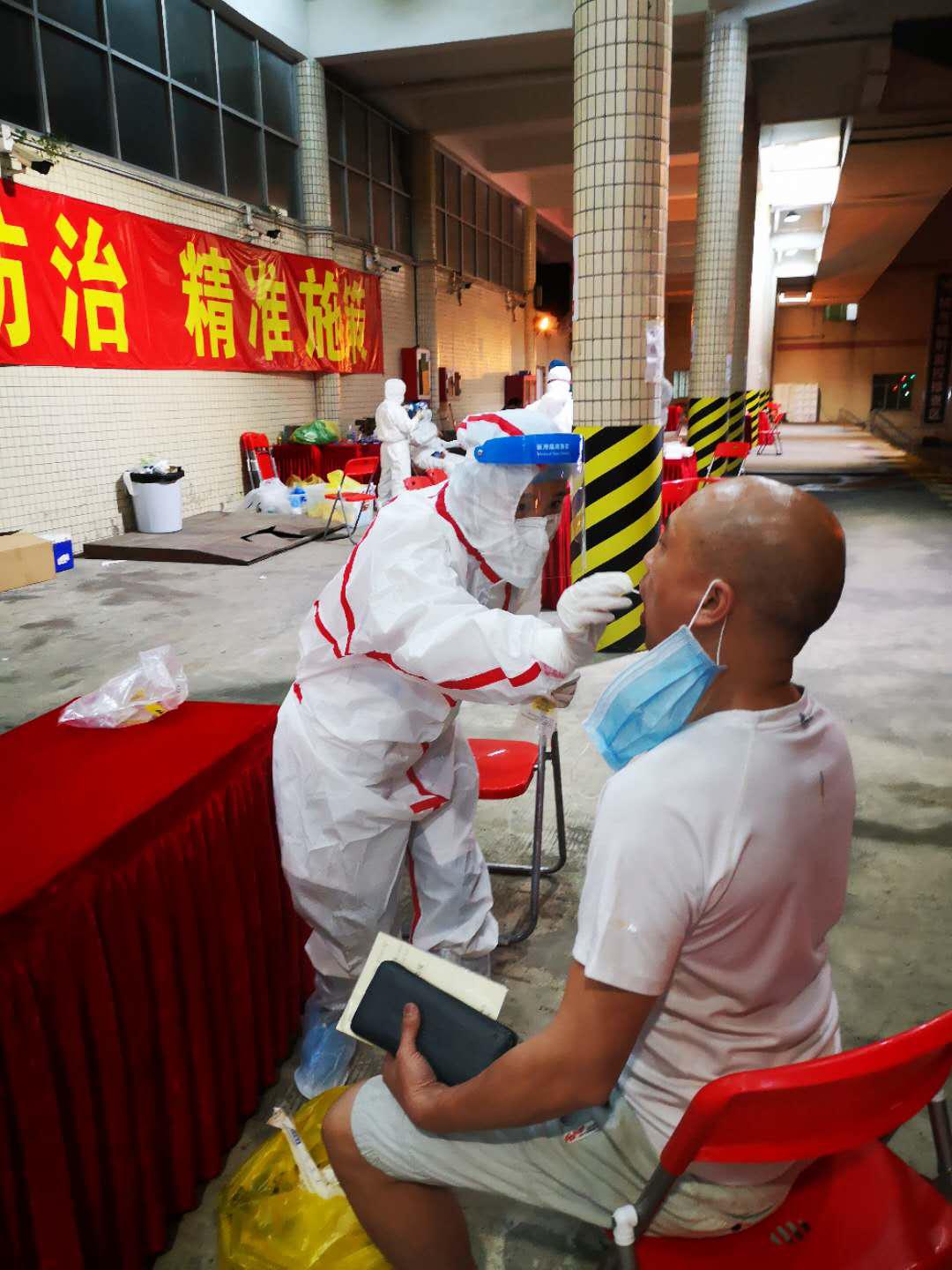 3月27日晚上11点多,福田区慢性病防治院接到区卫健局紧急通知,对皇岗口岸香港来深的货车司机进行核酸检测采样。疫情就是命令,防控就是责任。时间紧迫,慢病院核酸检测采样突击队反应迅速,紧急抽调5名骨干,不少采样队员请缨加入。准备好相关采样物资,冒雨赶赴皇岗口岸,凌晨1点左右正式开始采样。