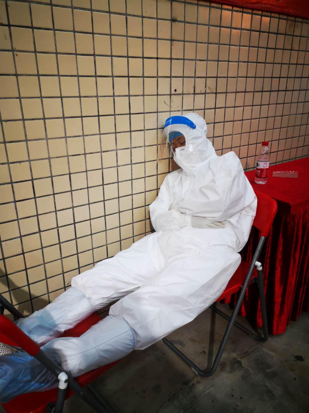 执行任务期间,有队员扭伤脚,行动不便也咬牙坚持到最后,有的队员累得直接靠墙就睡。采样结束后,突击队员脱下防护服衣衫尽湿,脸上留下一道道深深的口罩及防护眼镜压出的痕迹,也挡不住骄傲且自豪的笑容。(陈佳雅、招琳)