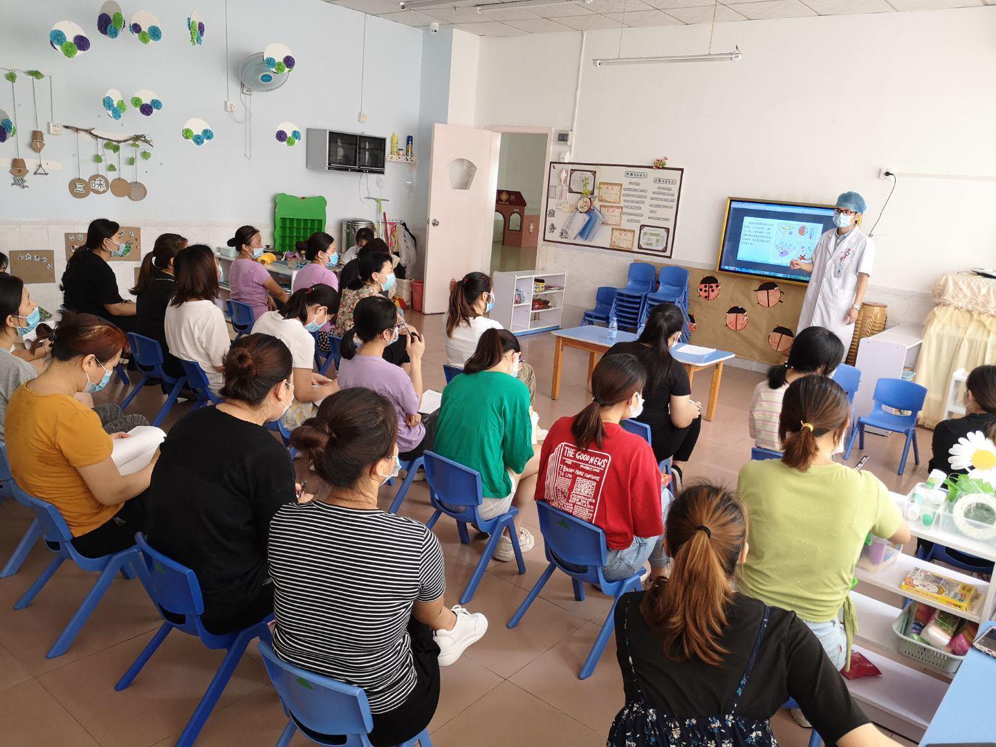 为保障幼儿园做好疫情防控工作,福田区慢性病防治院10家社康中心的医护人员来到教职工及保洁人员中间开展讲座,进行新冠肺炎防控培训。讲座主要内容包括新冠肺炎防控基本知识;幼儿园卫生消毒;个人疫情防控要求;监测、报告及应急处置;师生体温筛查、转运及跟踪处置等。