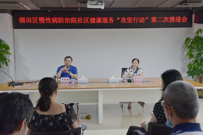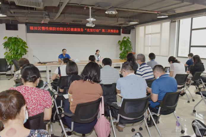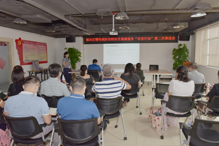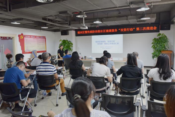 2020年8月31日下午,福田区慢性病防治院召开社区健康服务工作“攻坚行动”第二次推进会。院领导、“老高糖”质控中心、各职能科室、社康中心相关工作人员参加会议。会议通报了福田区老年人、高血压和糖尿病健康管理项目质控中心和我院社康中心近半月“攻坚行动”工作情况,以及部分重点指标完成情况。院领导对工作目前存在的困难和问题现场协调解决并对下一步工作进行部署。霍敏俐副院长要求各社康中心统一思想、因地制宜,延长服务时间,加强医防融合流程再造,并完善各项工作细节和加大质控力度。李锡坡副院长带领大家重新学习了福田区社区健康服务工作推进部署会精神和要求,提出规定动作、增值服务和督查督办三个“到位”要求。