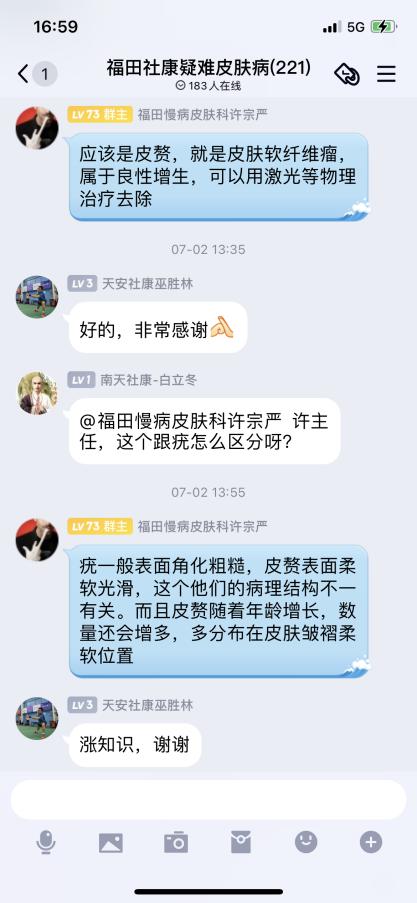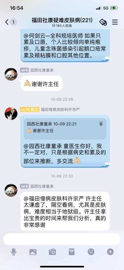 新冠肺炎疫情期间,为了让社区居民及时享受到专业的皮肤病诊疗服务,区慢性病防治院皮肤科专家利用覆盖全区社康中心的工作群,为全区社康中心全科医师及时线上提供服务,指导开展疑难皮肤病的诊治,协助排查可疑病例,解决疫情期间病人就诊不便的问题,同时有效提升全科医生的常见皮肤病诊治能力,提高了麻风可疑病例的转诊质量。“线上问诊可以有效避免交叉感染的风险,又能最大限度解决病人的就诊需求。”“非常感谢许主任提供这个学习平台,每一次提问,您都能积极耐心解答指导,让我们受益匪浅,您是我们全科医生的家庭医生”,这些都是来自全科医生的肺腑之言。疫情防控期间,全区社康中心累计排查疑难皮肤病例200余例,保证了疫情期间疑似病例排查工作“监测不断,工作不乱”。(邱莉霞/文、图)
