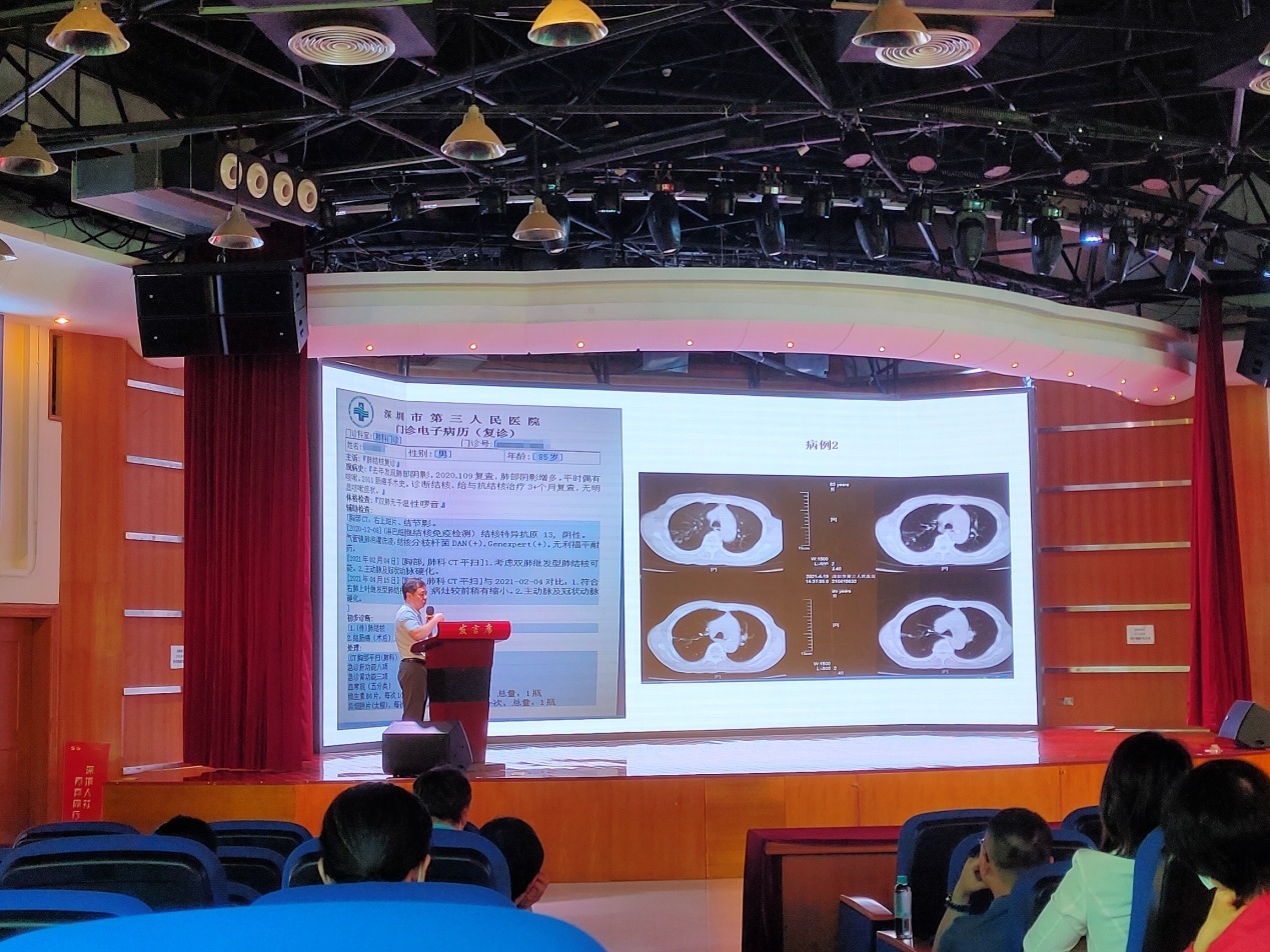 邓永聪教授通过分享日常诊疗中的典型病例,结合结核病诊断和分类标准(2017版)讲授结核病的诊疗规范;谭卫国所长从基层工作出发,讲授肺结核可疑症状者识别及转诊要点;福田区慢病院专家讲授了抗结核药物不良反应发现及管理,肺结核患者健康管理注意事项。通过本次培训,学员进一步掌握了结核病的诊疗规范,对肺结核可疑症状者识别及转诊流程更加明确,同时提高了对抗结核药物不良反应发现及管理水平,促进了我区结核病患者健康管理工作更加规范有序。(陈洁 叶海明/文 郭奕森/图)