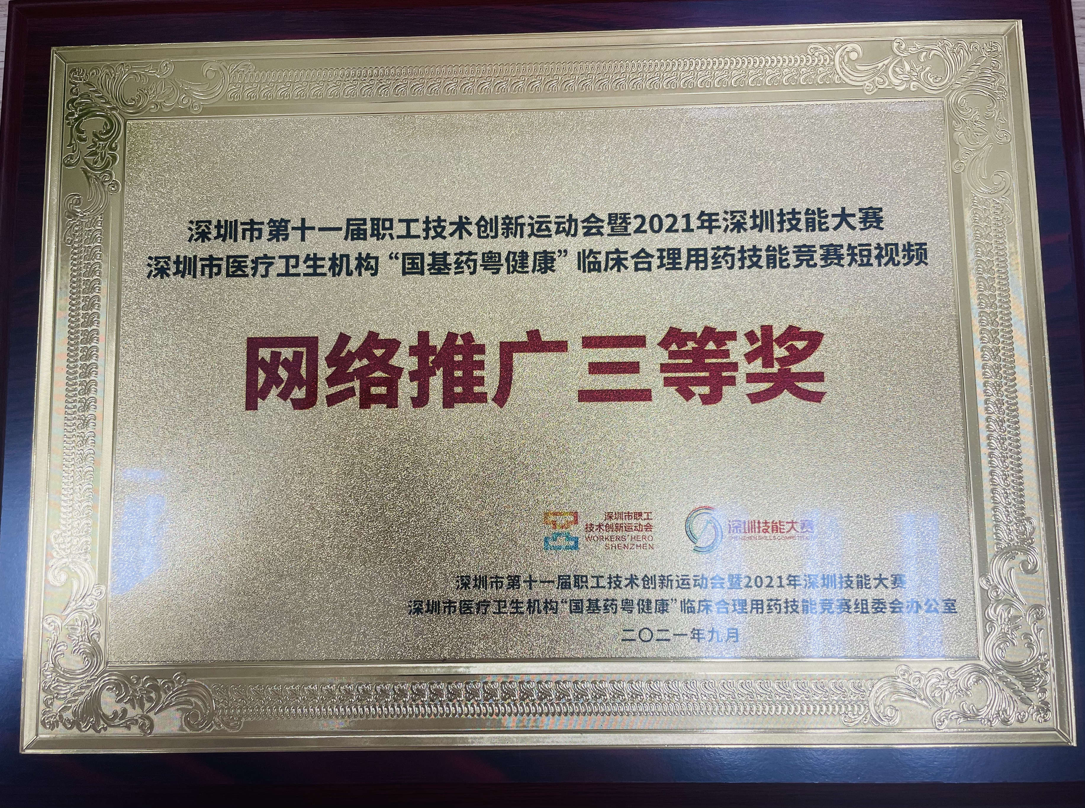 为贯彻新时期全国卫生健康大会精神,进一步巩固完善基本药物制度,提升临床合理用药水平,近日,深圳市卫健委、市总工会联合举办“国基药粤健康”临床合理用药技能竞赛及合理用药短视频比赛,通过“粤平台”向群众宣传国家基本药物制度惠民政策和合理用药知识。我院选送的视频《若有光》荣获短视频网络推广三等奖。