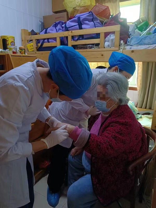社区像范伯这样患有基础病的老人不在少数,大年初五96岁的刘奶奶心衰合并肺部感染,医护立即出诊为她急救。社康董医生说,社康中心近期加强了对重点人群的健康指导、上门访视,指导居家吸氧、防跌倒、肺功能康复训练注意事项等,特别是指导合理用药,必要时抽血化验,防止因药物使用不合理损伤肝肾。1月21日至1月28日期间,益田社康中心共服务门诊患者403人,其中门诊服务65岁以上93人,转诊至上级医院2人。提供上门出诊服务3人,服务家庭病床3张,定期上门为患者提供监测血糖、血氧、血压、体格检查、生化检验、中医药服务、康复指导、健康宣教。