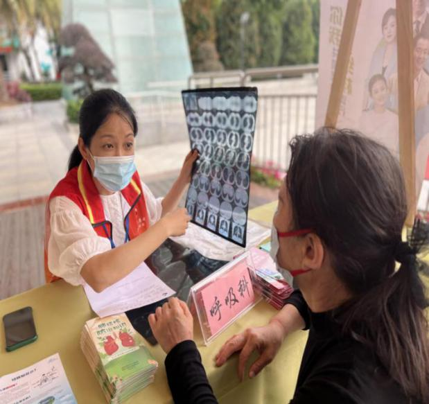 首先,通过“世界防治结核病日”和益田社区党员集市活动,利用LED电子显示屏播放宣传短片、组织结核病防治知识讲座、互动问答、义诊宣传、问卷调查和发放宣传资料等方式对项目进行全方位宣传,开展居民营养教育,包括结核病自我健康监测,促使居民出现肺结核可疑症状及时正确就医,消除对结核病患者的社会歧视,以及宣传佩戴口罩等健康行为。