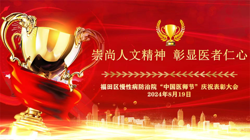 2024年8月19日,为大力弘扬“敬畏生命、救死扶伤、甘于奉献、大爱无疆”的职业精神,充分体现医师工作的价值感和荣誉感,福田区慢性病防治院举办了以“崇尚人文精神,彰显医者仁心”为主题的第七个中国医师节庆祝表彰大会。