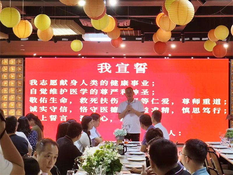 随后炫桢书记带领全体医师重温《中国医师誓言》,并向辛勤工作在医院各个岗位护佑人民生命健康的全体医师致以亲切的节日问候和崇高敬意。