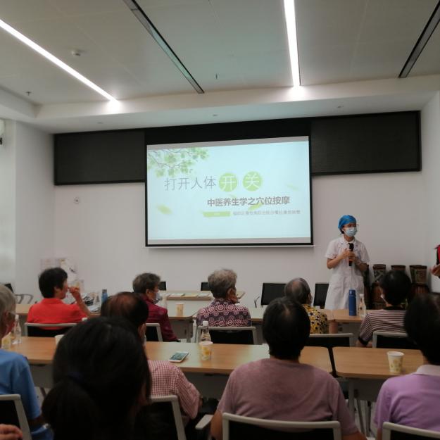 在区健康教育与促进中心的指导下,9月8日沙嘴社康中心在金地党群服务中心开展“打开人体开关——中医养生学之穴位按摩”主题健康知识讲座。沙嘴社康中心的中医专家通过简便易学、安全有效的中医穴位按摩手法,详细介绍了10个中医常用保健穴位,现场给老年人示范穴位的正确定位和按摩技巧,并一对一手把手教学,受到老人们的热烈追捧。此次活动加强了居民的中医保健意识和基础保健技能,充分发挥中医适宜技术“简便验廉”的特点,广受居民好评。(徐珊珊/文、图)