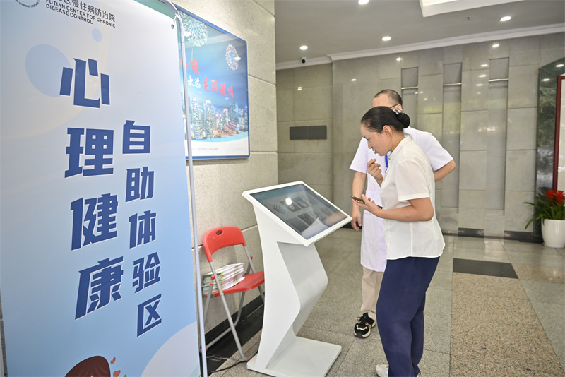 在互动体验环节,以脑功能放松、心理健康自助体验、发放宣传资料等多种形式,通过新奇趣味的方式,普及心理健康的重要性,提升居民对常见精神心理行为问题的识别与防治能力。