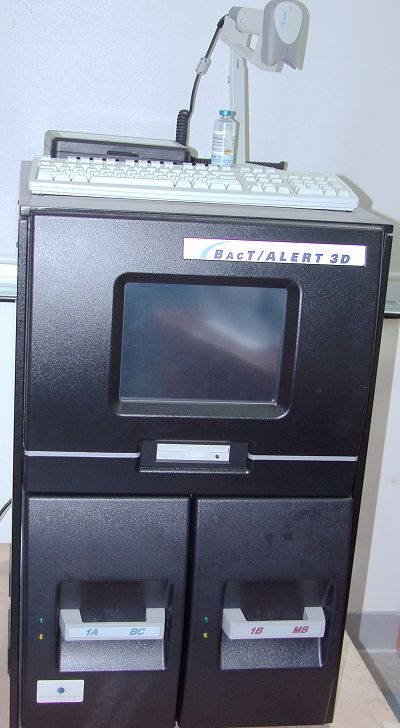 VITEK系列全自动微生物分析系统是法国biosMerieumx(生物梅里埃)生产的全自动微生物分析仪。BACT/ACERT 3D是全自动血培养系统新标准的第三代血培养系统,即连续监测血培养系统。这设备是由计算机控制,对血培养实施连续,非侵入性瓶外监测。培养养丰富,监测灵敏度高,能使检出的时间缩短,检出病原菌种类明显增加,污染明显减少。VITEK-32是微生物自动鉴定及药敏的设备。鉴定是通过微生物鉴定卡的生化反应结果生成生物数码与计算机系统的编码数据库进行对比鉴定细菌。药敏系统是使用药敏测试卡进行测试,其实质是微型华的肉汤稀释试验,仪器每隔一定时间自动测定小孔细菌的生长状况。得出细菌的最低抑菌浓度MIC值,即药敏结果。这种结果指导临床医生用药和降低抗生素有极大意义。